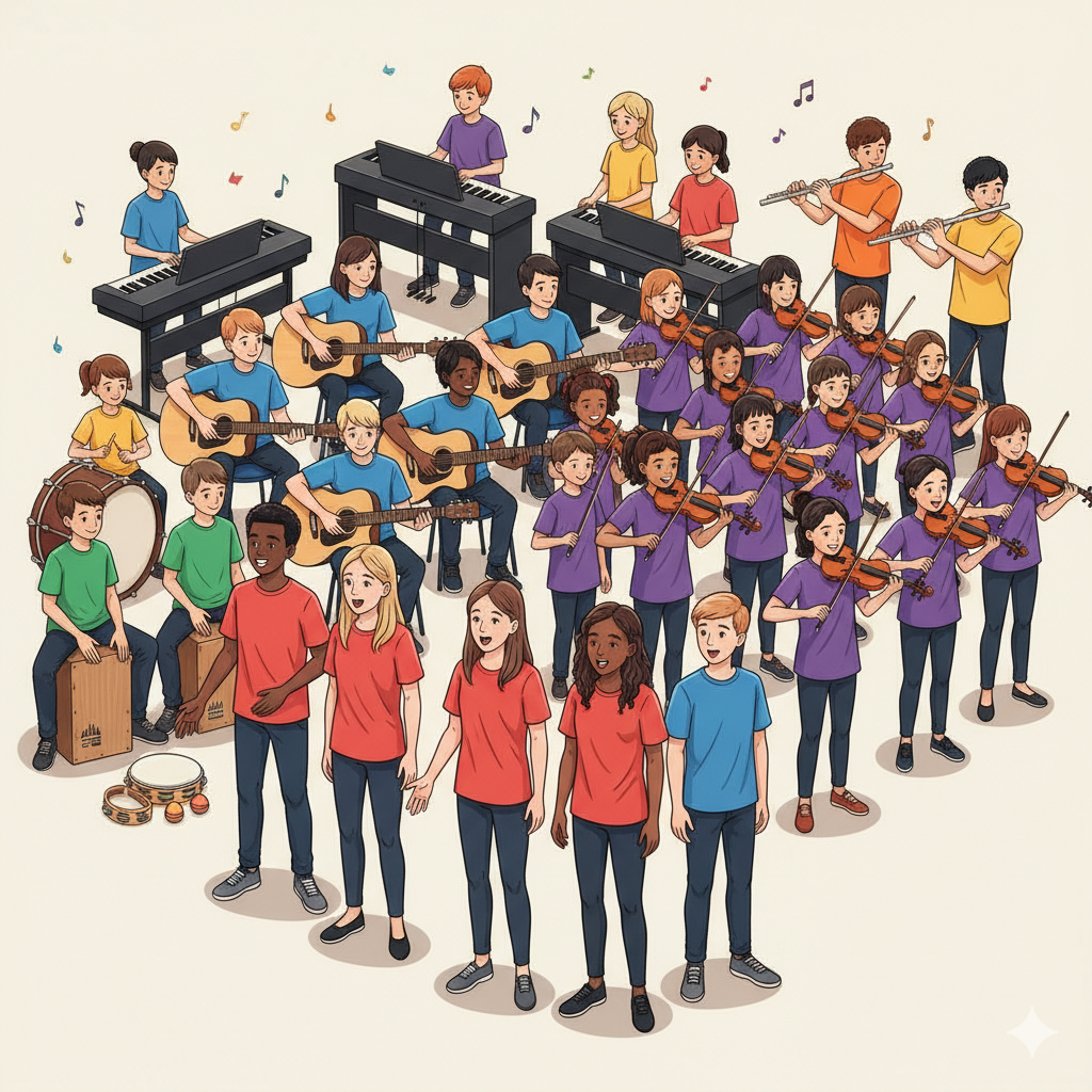 Encontre a vestimenta apropriada para cada turma da Escola de Música da EWQ